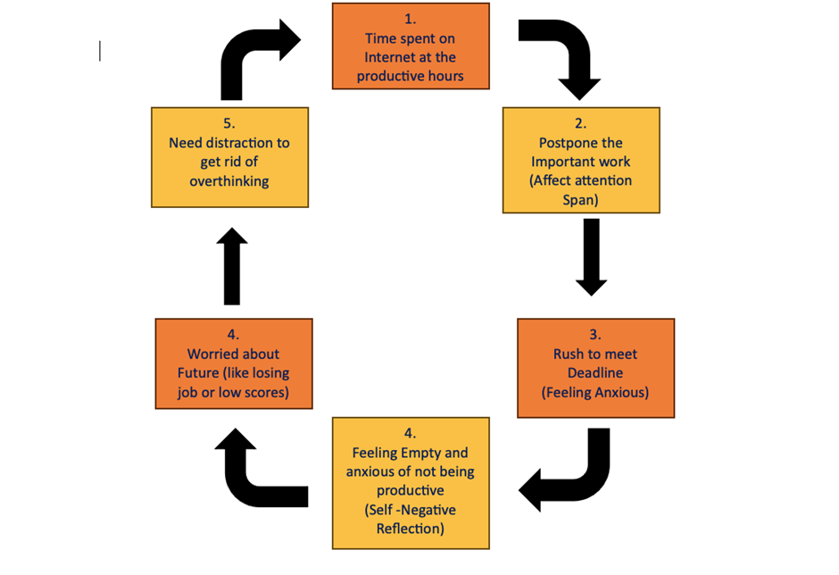 The cycle below is very useful to understand why High Internet usage increases our Anxiety and leads to Depression.